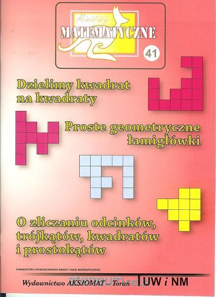 W tej książeczce omawiamy trzy zagadnienia. Pierwsze z nich dotyczy rozstrzygania tego, czy dany kwadrat można podzielić na zadaną z góry liczbę kwadratów. Drugie omawiane zagadnienie związane jest z tzw. geometrią kartki papieru i nożyczek, czyli rozcinaniem prostych figur płaskich na figury zadanego kształtu i odwrotnie, ze składaniem figur figury określonego kształtu. Trzeci problem dotyczy sposobów wyznaczania liczby odcinków, których końce znajdują się w punktach zadanego układu punktów oraz liczbytrójkątów, których wierzchołki należą do pewnego układu punktów, jak i liczbyprostokątówwidocznych w podziale prostokąta na kwadraty jednostkowe.