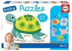 Początek dziecięcej przygody z puzzlami. Puzzle przeznaczone dla najmłodszych (od 2 roku życia). Atrakcyjna kolorystyka , proste, przyjemne dla dzieci formy oraz duże i nieskomplikowane klocki, pomagają dzieciom w prawidłowym rozwoju. Dzięki 3mm grubości maluszkom łatwo będzie chwytać i dopasować do siebie poszczególne elementy. Każde opakowanie zawiera 6 wzorów, które składają się z różnej liczby elementów (od 2 do 7). Dzięki temu dziecko może stopniowo poznać cel i sens zabawy odkrywając zasady łączenia ze sobą poszczególnych części