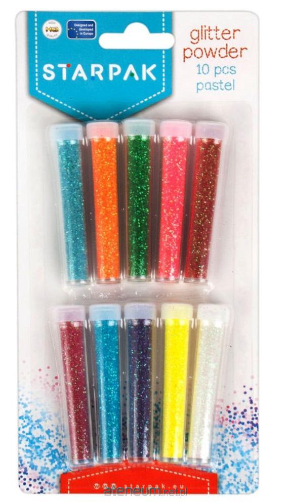 Brokat sypki Starpak w 10 pastelowych kolorach. Każdy zamknięty w osobnym pojemniczku o wadze 4g. Idealny sposób na urozmaicenie rysunków, świetną zabawę i piękne dekoracje.