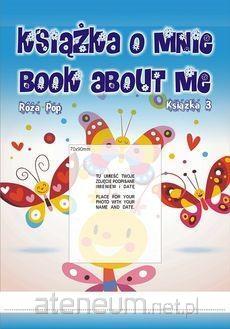 Książka o mnie czyli Book about me Róży Pop to trzecia książka, a w zasadzie kontynuacja tego tytułu pod hasłem: Jestem spostrzegawczy i dużo wiem. Ćwiczenia do wykonania to namalowanie obrazka na konkretny, wskazany temat, podpisanie go, a nawet opisanie, jeśli dziecko zna już podstawy języka pisania polskiego i angielskiego. Maluch musi na przykład przedstawić na rysunku następujące tematy: Spostrzegłem w drodze do szkoły..., Znam te warzywa i owoce... Tak wyglądają pory roku, Podpatrzyłem zachód słońca..., Podpatrzyłem zwierzęta.... Dziecko wykonując zadania staje się autorem trzeciej książki, ucząc się przy okazji języka polskiego i angielskiego. To fantastyczna pamiątka, która daje poczucie ważności i spełnienia, a po latach przypomni jak dziecko wyglądało, do jakiej szkoły chodziło, jak opisywało rodziców, jakie były jego plany i marzenia, jak spędzało czas wolny i jak pięknie malowało. Zadania wzbudzają kreatywność, myślenie, spostrzeganie i obserwację. Dziecko debiutuje jako pisarz i rysownik, malarz, ale najważniejsze są płynące z tego korzyści, czyli nauka poprzez zabawę oraz spędzony z rodzicami, tak cenny i niezastąpiony.