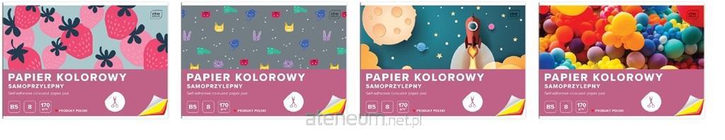 Zeszyt papierów kolorowych samoprzylepnych. Format B5, 8 kartek. 10 sztuk w opakowaniu zbiorczym. Producent Interdruk