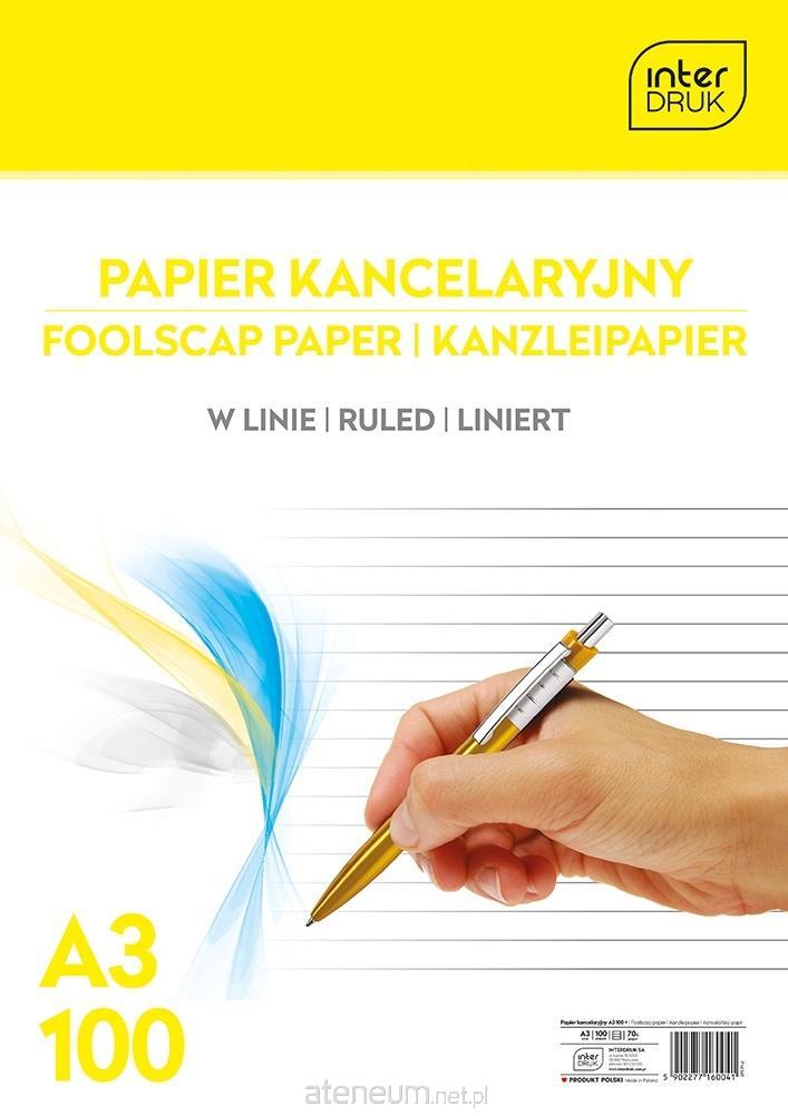 Papier kancelaryjny w linie.Format A3, 100 kartek. Producent Interdruk.