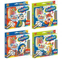 Kredki Trilino w drewnianej, nielakierowanej oprawie, 12 intensywnych kolorów. Zostały przygotowane dla najmłodszych dzieci, które pobierają edukację przedszkolną.
