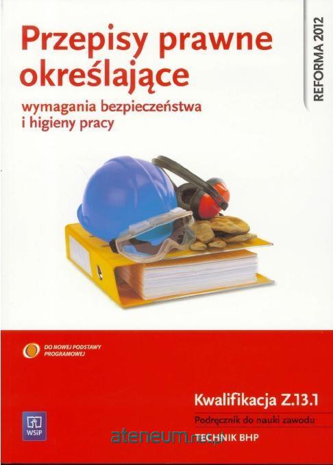 Podręcznik do nauczania w zawodzie technik bezpieczeństwa i higieny pracy realizujący treści z zakresu pierwszej części kwalifikacji Z.13 (Monitorowanie przestrzegania przepisów prawnych określających wymagania bezpieczeństwa i higieny pracy). W publikacji zawarto treści dotyczące obowiązków oraz odpowiedzialności pracodawcy i pracownika w obszarze BHP, nadzorowania przepisów ochrony pracy odnoszących się do kobiet, młodocianych i niepełnosprawnych oraz odpowiedzialności pracodawcy i pracownika z tytułu naruszenia przepisów prawa pracy. Podręcznik prezentuje wiedzę i uczy umiejętności związanych z wykonywaniem regulaminów i instrukcji stanowiskowych, a także kontroli maszyn i urządzeń technicznych pod kątem przestrzegania przepisów BHP.