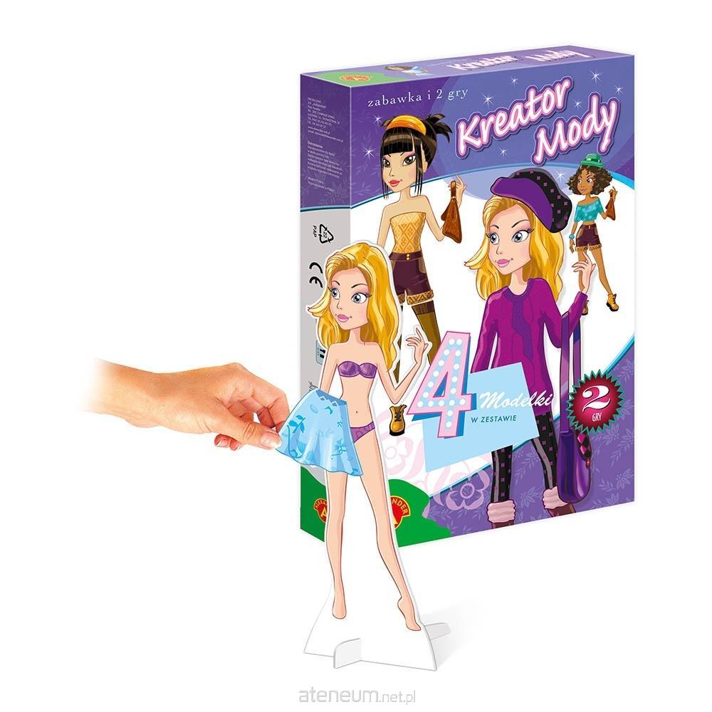 Kreator mody to zabawa polegająca na ubieraniu 4 modelek z dobranych i skomponowanych przez siebie elementów garderoby, znajdujących się w pudełku. Części ubrań są zróżnicowane pod względem kształtu i kolorystyki, co pozwoli na tworzenie zaskakujących i oryginalnych kreacji. Do wizerunków modelek można łatwo przyczepiać różne części garderoby (bez użycia kleju). Zabawa w kreatora mody rozbudzi Twoją wyobraźnię i zachęci do twórczego działania sprawiając jednocześnie wiele radości i satysfakcji.