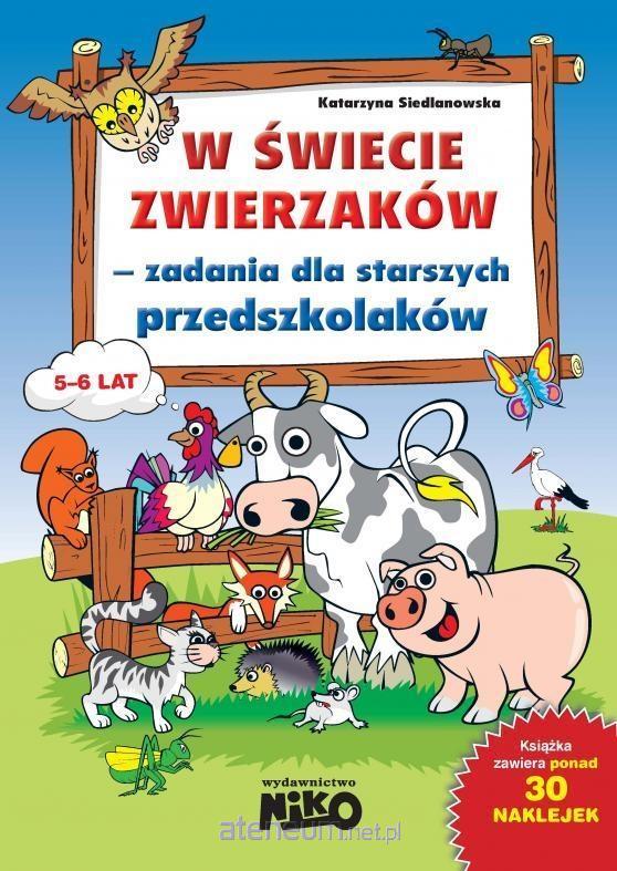 Książka ,,W świecie zwierzaków zadania dla starszych przedszkolaków skierowana jest do dzieci 5-letnich. Proponowane zabawy i zadania przygotowują dziecko do nauki czytania i pisania a także budzą jego zainteresowanie światem przyrody. Ćwiczenia zawarte w książce rozwijają koordynację wzrokowo-ruchową, percepcję wzrokową, umiejętność logicznego myślenia oraz orientację przestrzenną. Poprzez zabawne wierszyki dziecko poznaje zwierzęta i ich zwyczaje. Książka ,,W świecie zwierzaków zadania dla starszych przedszkolaków pomoże kształtować u dziecka przyjazny, opiekuńczy stosunek do zwierząt. Książka zawiera ponad 30 NAKLEJEK !