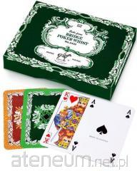 2x55 kartonowych kart o klasycznym wyglądzie. Powleczone plastikiem. Dwie talie z rewersami w kolorach brązowym i zielonym. Cztery standardowe indeksy.