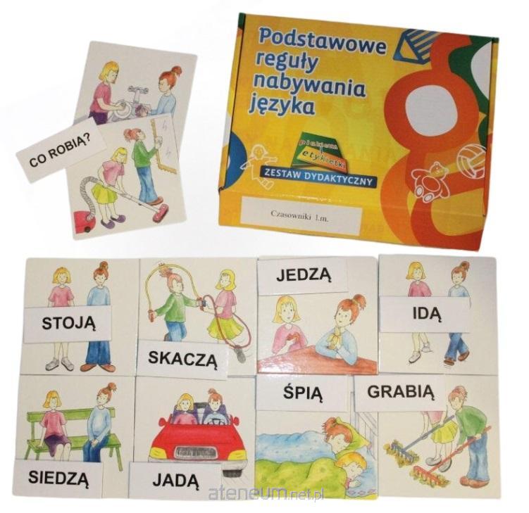 Zestaw ten służy do nauki umiejętności różnicowania liczby czasownika w czasie teraźniejszym w 3 osobie, czytania pełnymi wyrazami (czytanie globalne), różnicowania końcówek, rozumienie pytań: Co robią?