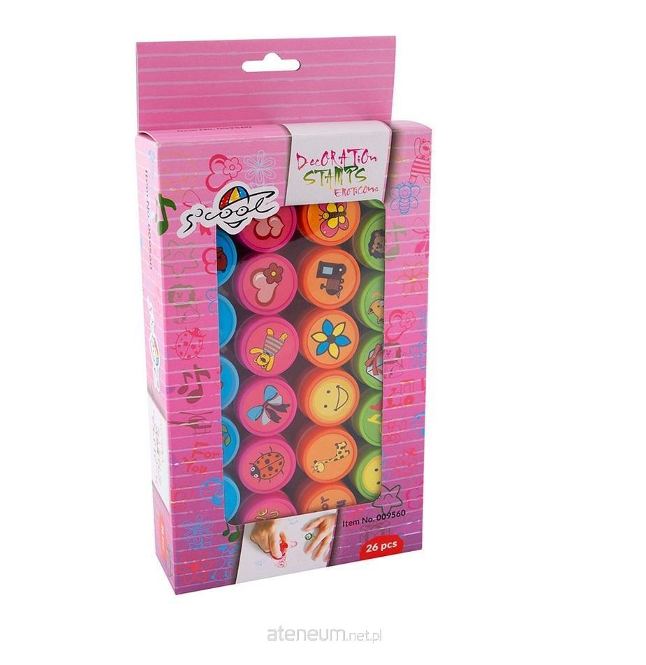 Zestaw 26 pieczątek dekoracyjnych z różnymi motywami, np.:motylki, serca, kwiatki.