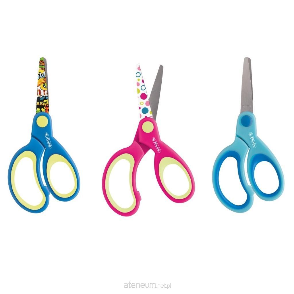 Nożyczki zaokrąglone Herlitz w rozmiarze dziecięcym, uchwyty zostały pokryte elastycznym tworzywem sztucznym tak aby podnieść komfort wycinania, ostrza ozdobione kolorowym nadrukiem, dostępne 3 wersje kolorystyczne.