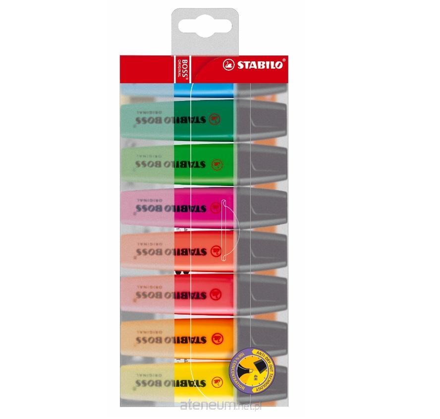 Nr 1 na świecie! Zakreślacz fluorescencyjny z tuszem na bazie wody, do pisania na wszystkich rodzajach papieru (również faksowym i samokopiującym). Duża odporność na wysychanie. Dostępny w 9 kolorach, szerokość linii od 2 do 5 mm. Plastikowe etui z zawieszką zawierające 6 szt. w kolorach: 24, 31, 33, 40, 54, 56.