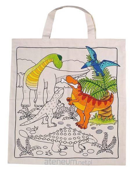 Biała torba z czarnym wzorem do pokolorowania. Pomalowane według własnego pomysłu dinozaury nadadzą jej niepowtarzalnego charakteru.