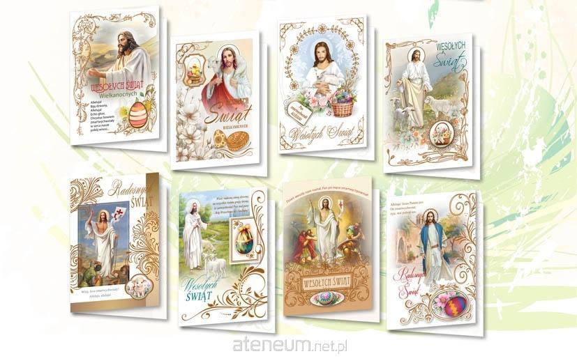 Karnet z elementami naklejanymi na gąbce, lakierowany lakierem UV, brokatowany, wycinany z kolorowym rewersem i życzeniami. Pakowany do folii wraz z kolorową kopertą w zestawach po 10 sztuk.