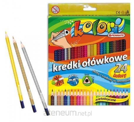 Komplet 24 sztuk kredek ołówkowych w trójkątnej obudowie, kolor złoty i srebrny w zestawie. Grafit o średnicy 3 mm i zwiększonej odporności na złamanie. Nowoczesna formuła pigmentów dająca żywe, niegasnące kolory. Obudowa wykonana z najwyższej jakości jasnego drewna lipowego, łatwego w temperowaniu. Nadruk na trzech płaszczyznach, końcówki kredek lakierowane metodą zanurzania. Foliowane, trwałe pudełko z tacką na kredki w środku. Temperówka w zestawie gratis. Nietoksyczne, zgodne z normą EN71.
