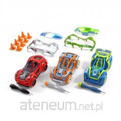 czerwona maska i błotniki samochodu wyścigowego, niebieska zabudowana maska i biały błotnik drogowej wyścigówki, rama samochodu wyścigowego, podwozie samochodu wyścigowego, siedzenie, 4 koła, 2 zawieszenia, opakowanie zawiera łatwy w obsłudze śrubokręt.