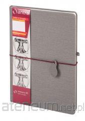 Kolekcja: Impresja Rozmiar i typ wnętrza: A5, kratka 14 x 210 mm (wymiar zewnętrzny okładki) Oprawa miękka: ekologiczna z surowców naturalnych Papier 80 g Koperta z tyłu na karteczki Posiadają specjalną gumkę na długopis Wstążka w kolorze okładki Pierwsza i ostatnia strona notesu wykonana z ozdobnego papieru w kolorze ekri Notes zamykany jest na sprytną gumkę Ilość stron A5-192