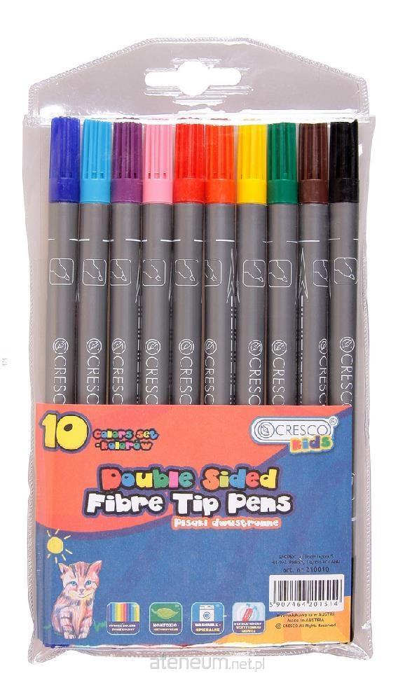 Pisaki dwustronne CRESCO charakteryzują się bardzo wysoką jakością, którą potwierdzają intensywne kolory, atrament nietoksyczny wyprodukowany na bazie wody oraz wentylowana skuwka, zapewniająca dłuższe użytkowanie produktu. Pisaki posiadają dwie grubości końcówek: cienką do dokładnego kreślenia oraz grubą umożliwiająca uzyskanie 2 grubości linii. Atrament zastosowany w tym produkcie jest łatwo zmywalny z większości powierzchni, również z tekstyliów.
