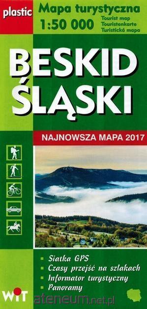 Składana, laminowana mapa turystyczna Beskidu Śląskiego w skali 1:50 000. Legenda w języku: polskim, angielskim, niemieckim oraz słowackim. Mapa obejmuje teren pomiędzy Bielsko Białą, a granicą państwa (w rozciągłości równoleżnikowej), i od miasta Cadca w północnej Słowacji po Żywiec (w rozciągłości południkowej). Zawiera wszystkie niezbędne turyście informacje tj. szlaki turystyczne, rowerowe, szlaki o charakterze lokalnym, narciarskie, punkty widokowe, miejsca biwakowe, pola namiotowe itp. Poziomice naniesione są co 10 m, jest również cieniowana co znacznie ułatwia jej czytanie. Na rewersie mapy znajduje się opis regionu z uwzględnieniem budowy geologicznej, klimatu, etnografii, jest też krótki opis zabytków. Zamieszczone dwie panoramy - z Klimczoka i Baraniej Góry, ułatwiają rozpoznanie ważniejszych szczytów. W wyróżnionej ramce umieszczono telefony alarmowe polskie i słowackie, numery ratunkowe w górach oraz numery ważniejszych schronisk. Publikacja zawiera: - mapę Beskidu Śląskiego w skali 1:50 000, - mapę przestrzenną Beskidu Śląskiego, - panoramę z Klimczoka 150, - panoramę z Baraniej Góry 330.