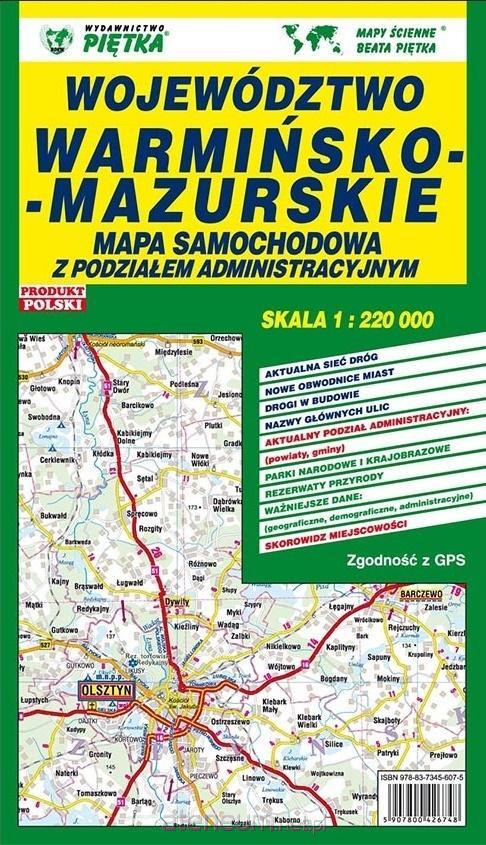 Dzięki mapie składanej województwa warmińsko mazurskiego nietrudne będzie dotarcie do wybranego miejsca bez GPSa. Dokładne oznaczenie dróg ekspresowych, głównych i bocznych wraz z numeracją i podanymi odległościami pozwoli zaplanować trasę i sprawnie ją pokonać. Nie zabrakło informacji na temat atrakcji turystycznych i szczególnie interesujących obiektów oraz szczegółów typowo administracyjnych jak na przykład oznaczeń siedziby województwa, powiatów i gmin, a nawet kodów pocztowych.