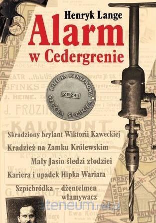 Walka pomiędzy stróżami prawa a zbrodniarzami trwa przez całą historię ludzkości. Coraz doskonalsze zabezpieczenia są pokonywane przez coraz sprytniejszych złodziei. Zmieniają się metody pracy po obu stronach barykady, ale ludzka chciwość i chęć zarobku cudzym kosztem pozostają niezmienne od stuleci. Wielu przestępców zdobyło sławę Stanisław Cichocki ps. Szpicbródka, Wincenty Brodzki, Wiktor Zieliński korowód ciągnie się w nieskończoność. Przeciwko nim stanął Henryk Lange kierownik brygady kradzieżowej Urzędu Śledczego m.st. Warszawy. W "Alarmie w Cedrgrenie" opisuje najciekawsze sprawy i afery, które rozpracował, głównie dzięki własnemu sprytowi i intuicji, bez pomocy specjalistycznych laboratoriów (daktyloskopia dopiero się rozwijała), a często przy pomocy blefu i wielkiej pewności siebie.