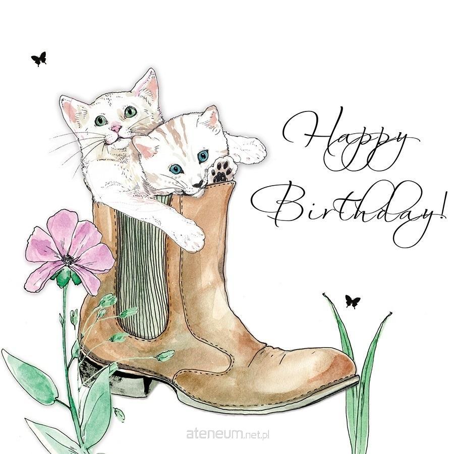 Karnet bez tekstu z kopertą, ręcznie robiony z kryształkiem Swarovski, Urodziny koty w bucie.