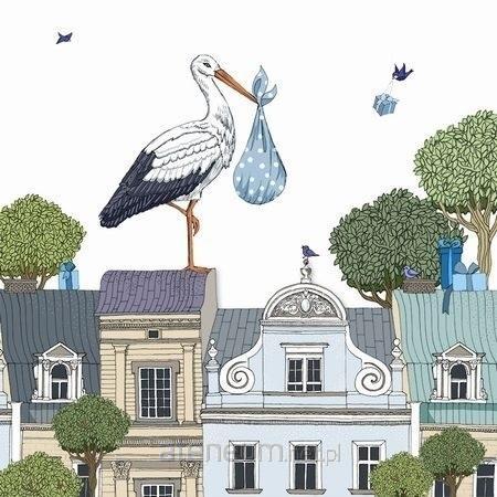 Karnet bez tekstu z kopertą, ręcznie robiony z kryształkiem Swarovski,Narodziny chłopiec bocian.