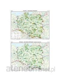Na pierwszej stronie przedstawiono aktualny stan ochrony przyrody w Polsce. Umożliwia to prezentowanie uczniom rozmieszczenia obszarów chronionych, m.in. parków narodowych i krajobrazowych, oraz występowanie fauny i flory chronionej w Polsce. Na odwrocie umieszczono wersje ćwiczeniową tej mapy.