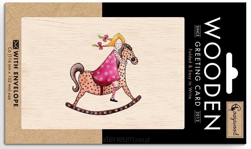 Karnet drewniany C6 + koperta Kobieta z żabą