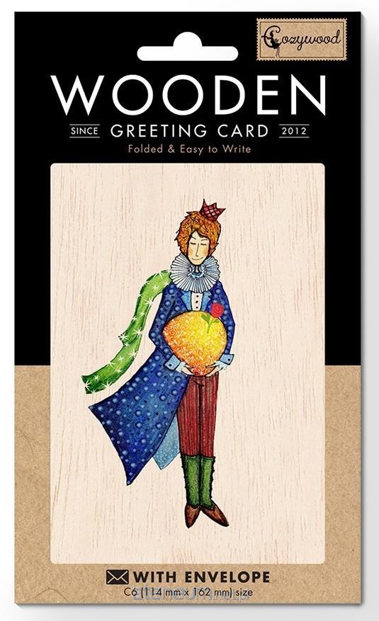 Karnet drewniany C6 + koperta Kobieta na balonie