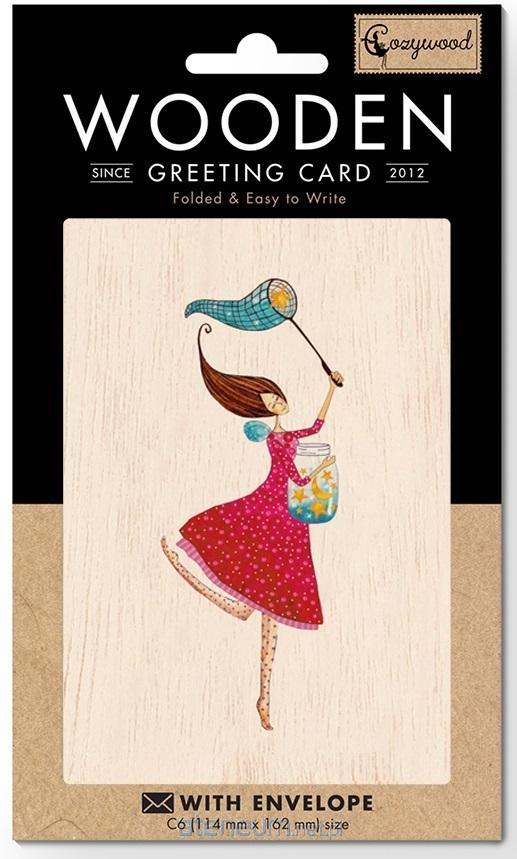 Karnet drewniany C6 + koperta Kobieta z balonem