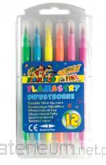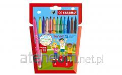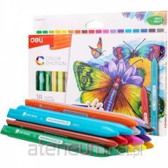 Mazaki o trójkątnym profilu w 12 kolorach. Nietoksyczne i zmywalne. Wentylowana skuwka. Produkt dostępny w 2 wersjach kolorystycznych.