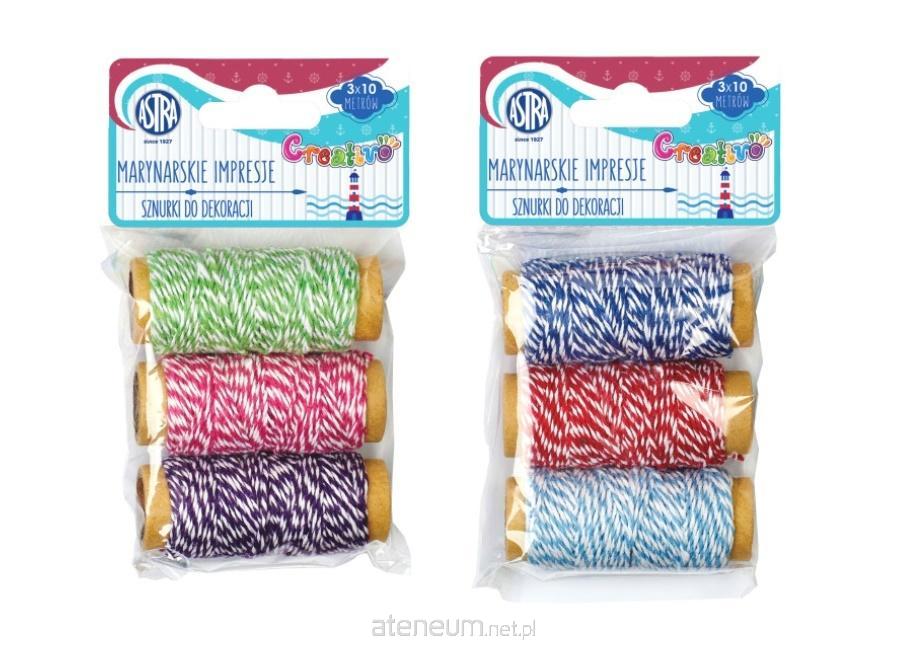 Sznurki do dekoracji - marynarskie impresje 3szt. x 10m. Idealne do scrapbookingu, ozdabiania bombek i jajek styropianowych, kartek okolicznościowych, zaproszeń i zakładek do książek. Świetnie nadają się do pakowania prezentów oraz do tworzenia dekoracji świątecznych i stroików. Dwa wzory - wysyłane losowo!