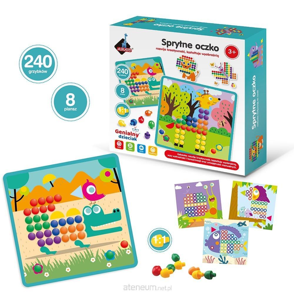 Mozaika zawiera 240 elementów. Pinezki mają kształt grzybka. W zestawie znajduje się 8 wymiennych plansz.