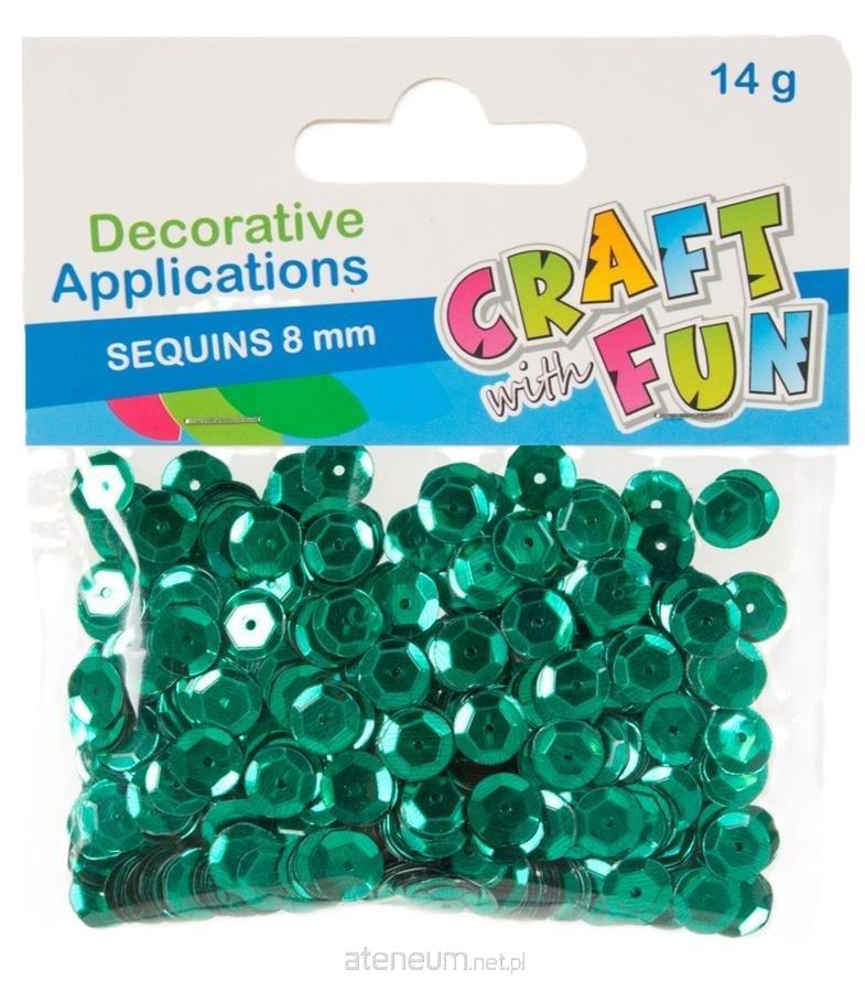 Przy pomocy Cekinów Craft with Fun można zaprojektować własne ozdoby lub dekoracje. Idealne do wykonywania wszelkich prac dekoratorskich, jak również do zabaw plastycznych, do wzbogacenia ozdób wykonanych techniką decoupage. Używaj tych produktów w połączeniu z innymi akcesoriami oraz kompletami z serii Craft With Fun! Opakowanie zawiera metaliczne, okrągłe, zielone cekiny o średnicy 8 mm. W opakowaniu znajduję się 14g. cekinów. Cekiny wykonane z plastiku.