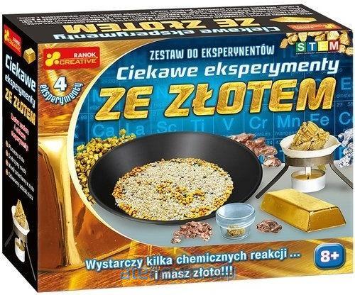Z pomocą tego zestawu możesz zostać alchemikiem i zamienić zwykłe przedmioty w złoto! Nie wierzysz? Myślisz, że to zbyt skomplikowane? Mylisz się! Wystarczy kilka minut, a będziesz trzymał w dłoni kawałek złotego kruszcu. A może chcesz odnaleźć w sobie talent poszukiwacza złota i wypłukać "złote" samorodki ze zwykłego piasku, i to bez wychodzenia z domu. A zatem, dziś czeka na ciebie prawdziwa "gorączka złota"! Zestaw zawiera 4 ciekawe eksperymenty: 1 Płuczemy złoto 2 Srebrzymy miedź 3 Miedź zmieniamy w złoto 2 Produkujemy sztabki złota