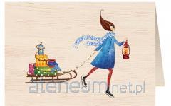 Karnet drewniany C6 + koperta Święta Kobieta Sanki