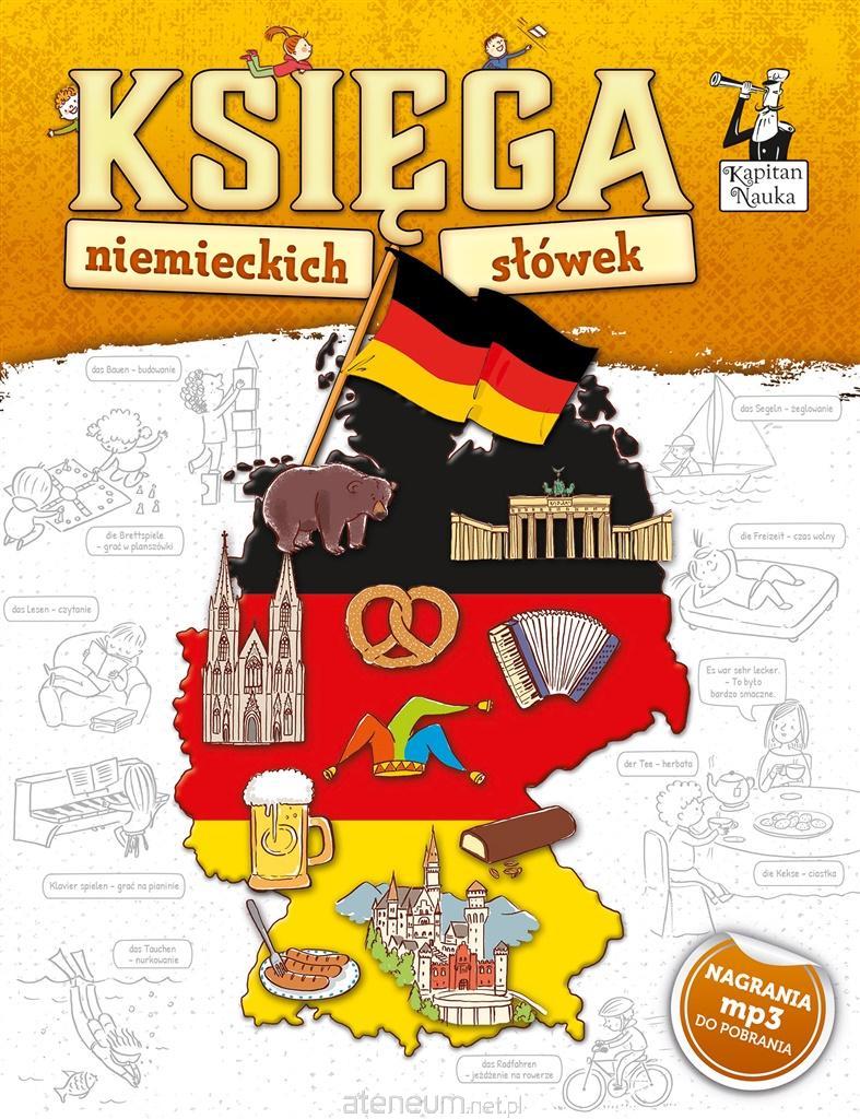 Księga niemieckich słówek to niezwykle przyjemny i skuteczny sposób na rozpoczęcie przygody z językiem niemieckim. Pełne szczegółów, lekkie i pomysłowe ilustracje Katarzyny Kołodziej zabiorą dzieci w wyjątkową podróż. 16 kolorowych rozkładówek przybliży małym odkrywcom słownictwo pogrupowane tematycznie wokół takich zagadnień jak lotnisko, owoce i warzywa, pojazdy, rodzina i wiele innych. Podczas wyprawy mali odkrywcy polecą samolotem, zjedzą smaczny obiad w restauracji, zobaczą z bliska tygrysa i zawitają na rodzinne przyjęcie. Przy okazji poznają niemieckie słówka i wyrażenia przydatne w codziennych sytuacjach, np. w sklepie czy u lekarza. Dzieci będą się uczyć słówek w kontekście, co sprzyja zapamiętywaniu. Dzięki nagraniom mp3 w wykonaniu native speakerów (do pobrania ze strony internetowej) najmłodsi bez trudu opanują poprawną wymowę i akcent. Duży format, twarda oprawa i piękne ilustracje sprawiają, że to idealna książka na prezent!