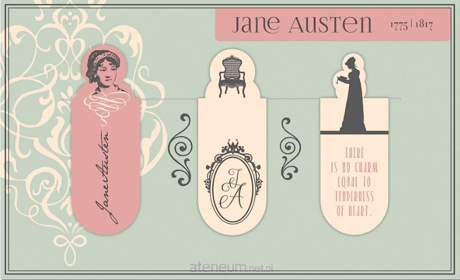 Zakładki magnetyczne - Jane Austen. Pięknie ilustrowane zakładki z wystającymi, ozdobnymi elementami. Nie tylko zaznaczają strony, ale także wyglądają z książki na górze i dlatego przyciągają wzrok. Szczególnie odpowiednie dla miłośników sztuki i literatury. Trzy zakładki magnetyczne w zestawie są tematycznie skoordynowane. Każdy zestaw dotyczy znanego pisarza z minionej epoki i zawiera cytaty, odpowiednie ilustracje do słynnych dzieł lub podpis autora. Skomponuj własną kolekcję z zakładkami Goethe, Schiller lub Shakespeare.