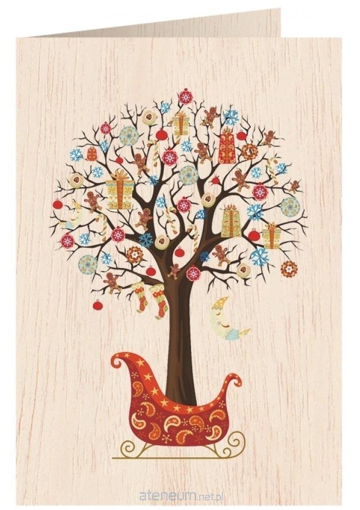 Karnet drewniany C6 + koperta Święta Kobieta Sanki