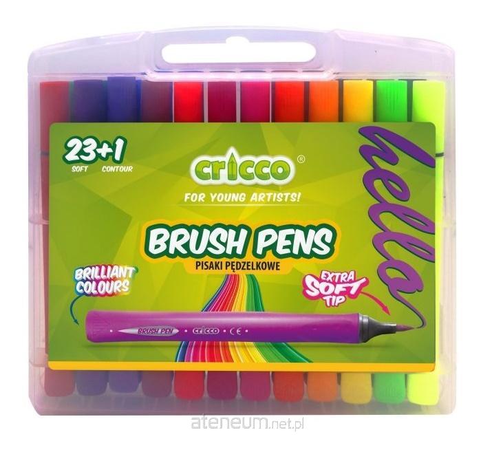 - pisaki z miękką końcówką w zarysie pędzelka z plastikowego włosia - delikatny tusz w żywych, intensywnych kolorach odpowiedni do jasnego papieru - wyśmienita alternatywa dla typowych pisaków i farb akwarelowych - wspaniałe do kolorowania, cieniowania i wykonywania dekoratywnych napisów - pakiet 24 barw (23 pisaki z końcówką pędzelkową + 1 czarny pisak do konturowania) - poręczne plastikowe opakowanie z zawieszką w zarysie kasetki z przegródkami do komfortowego przechowywania