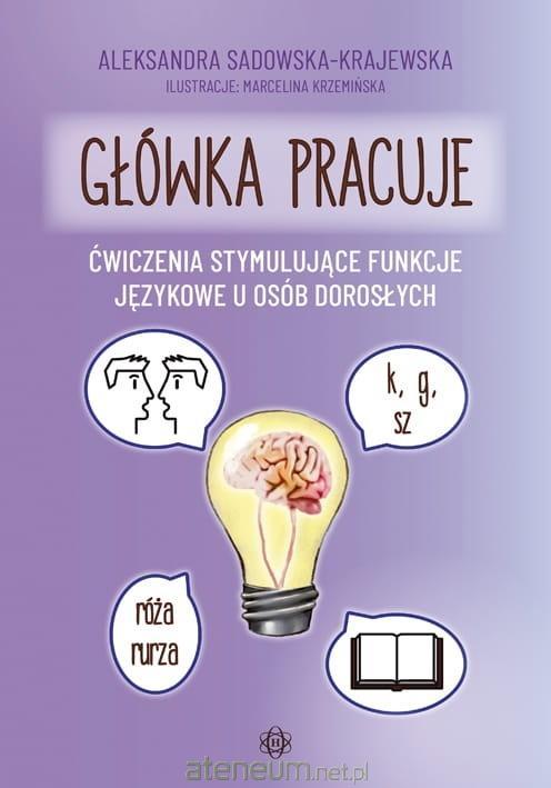 Zestaw ćwiczeń Główka pracuje przeznaczony jest do pracy z osobami dorosłymi. Jego cel to stymulowanie funkcji językowych oraz trening prokognitywny pacjentów z afazją, zespołami otępiennymi, chorobami neurodegeneracyjnymi. Przedstawione w nim ćwiczenia wywołują spontaniczną aktywność pacjenta, doskonalą procesy poznawcze oraz umiejętności komunikacyjne. Podczas wykonywania ćwiczeń pacjenci doskonalą umiejętność rozumienia, nazywania, powtarzania, pamięć, myślenie twórcze, wzbogacają słownik czynny, wydłużają czas koncentracji na wykonywanych zadaniach. Wszystkie ćwiczenia mogą służyć zarówno pracy indywidualnej, jak i wspólnej z terapeutą lub członkiem rodziny.