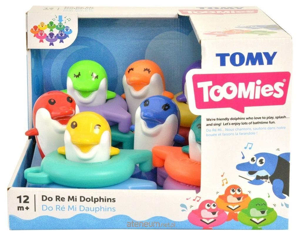 Delfinki, które należy dopasować kolorami do odpowiednich kół, a następnie połączyć wszystkie kółka w linię lub krąg pływający w wodzie. Każdy z delfinków, klepany po głowie, wydaje inny dźwięk.