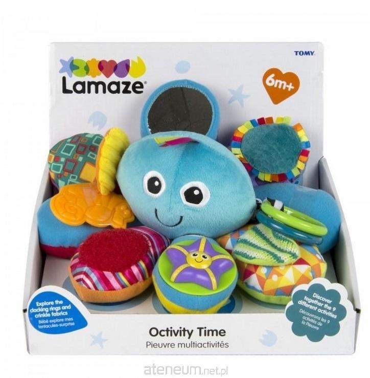 Wesoła ośmiorniczka z zabawką na każdej nóżce. Rożne faktury materiału, szeleszczące elementy, gryzaki i lusterko przyciągną uwagę dziecka.