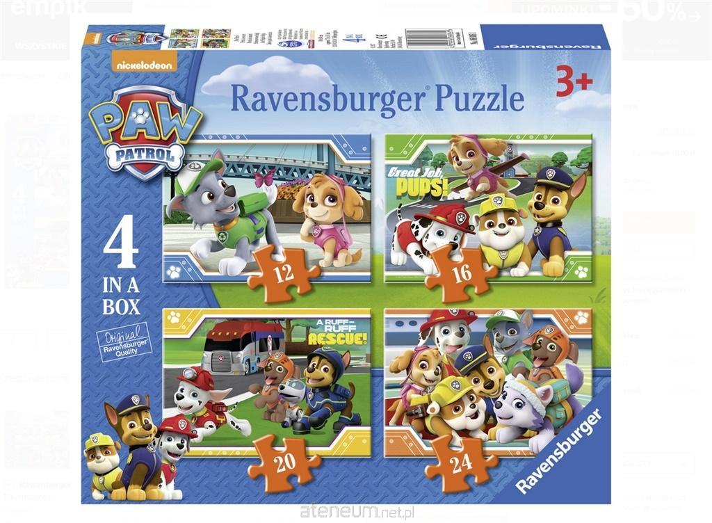 Puzzle 4w1 Psi Patrol 12/16/20/24 el. przedstawiają przygody bohaterów Psiego Patrolu dobra jakość nadruku dokładne dopasowanie elementów wysokie nasycenie kolorów rozwijają manualne zdolności Uwaga! Produkt nieodpowiedni dla dzieci poniżej 3 roku życia.