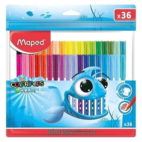 Flamastry Color'Peps Ocean 36 szt. w plastikowym etui z zamknieciem typu zip. Szeroka gama kolorystyczna, intensywne kolory, zmywalne ze skóry i wiekszosci tkanin. Wytrzymala koncowka o grubosci 2 mm. Dlugosc pisania 150 m. Dlugosc flamastra: 134 mm. Idealne do rysowania i kolorowania. Wentylowana skuwka. Bezpieczne, nietoksyczne, wyprodukowane zgodnie z wszystkimi regulacjami dotyczacymi produktów dla dzieci.