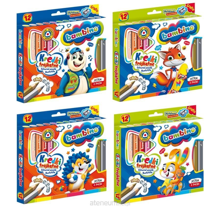 Kredki trójkątne drewniane 12 kolorów z temperówką.