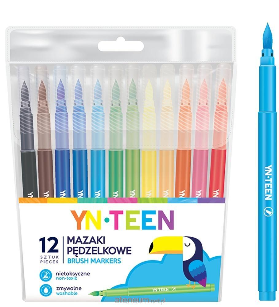Mazaki z pędzelkową końcówką w 12 kolorach. Nietoksyczne i zmywalne. Okrągły profil. Mają wentylowaną skuwkę.