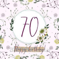 Karnet kwadrat mały z kopertą Urodziny 70 świeczki