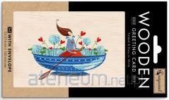 Karnet drewniany C6 + koperta Kobieta z dmuchawcem