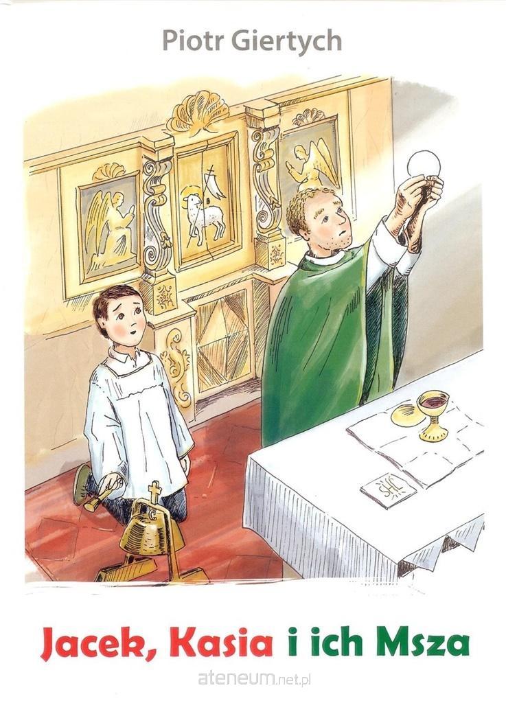 Książka jest kontynuacją historii opisanej w książce Piotrek i Ania idą do Pierwszej Komunii. Ci sami bohaterowie przeżywają nowe, niezwykłe przygody, a jednocześnie zagłębiają się w tajemnicę Mszy Świętej. Dzieci przystępujące do Komunii zaczynają nowy okres w swoim życiu. Ofiara Chrystusa, w której uczestniczą jest wyjaśnieniem najtrudniejszych i najboleśniejszych spraw, z którymi styka się każdy człowiek. Książka Jacek, Kasia i ich Msza pokazuje ciepło życia rodzinnego oraz piękno historii naszego kraju. Książkę mogą czytać dzieci same, lub rodzice mogą im czytań na dobranoc. Publikacja ta to doskonały prezent na Komunię